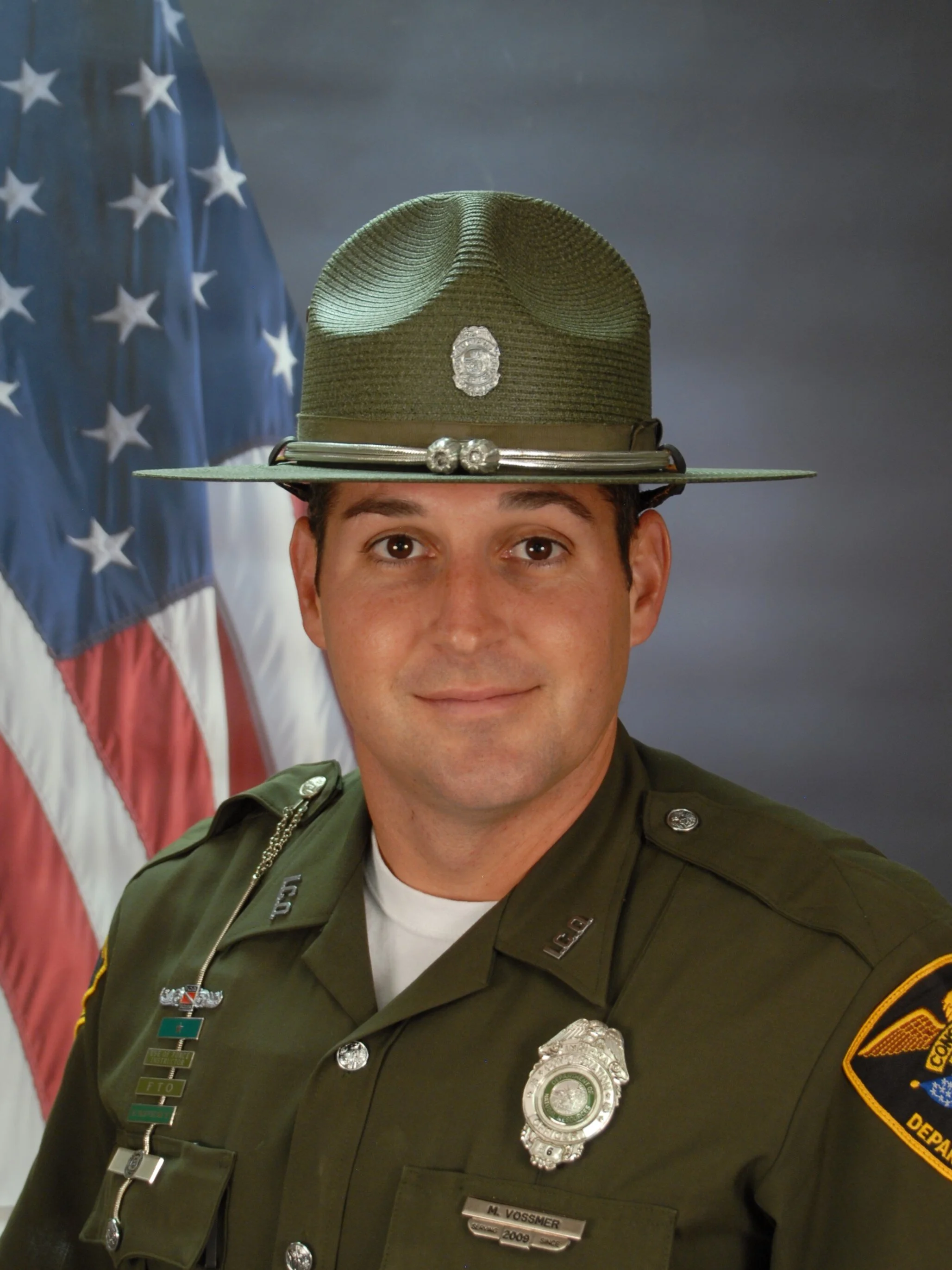 Vossmer has been a conservation officer for 10 years. Vossmer serves as a certified breath test operator, background investigator, drill instructor, field training officer, firearms instructor, use of force instructor, AGA mask technician, sonar operator and diver.