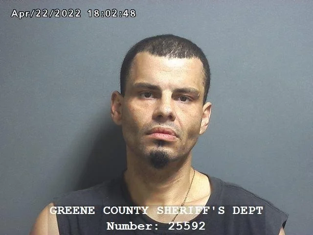 Sharp was booked into the Greene County Jail at 6:51 PM with bond set at $500 surety with 10% cash allowed. As of late Monday, April 25, he had not yet posted bond and remained in custody.