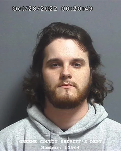 Justin Warren Riggleman, 22, Linton, was arrested by Officer Cayden Walker of the Linton Police Department and booked into the Greene County Jail at 12:17 AM on Friday, October 28, following an incident that occurred late Thursday, October 27.