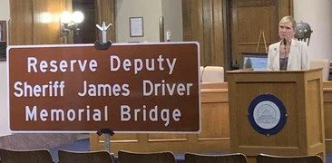 Senate Concurrent Resolution 13 was passed earlier this year by the Indiana General Assembly to rename the bridge in memory of Reserve Deputy Driver, who was killed while responding to a crash on March 29, 2021. The resolution was authored by Sen. Shelli Yoder (District 40) and sponsored by Rep. Matt Pierce (District 61), Rep. Thomas Saunders (District 54) and Rep. Jeff Ellington (District 62). Ceremony attendees included family members of Deputy Driver, Sen. Yoder, Monroe County Sheriff Brad Swain and representatives from the Indiana Department of Transportation.