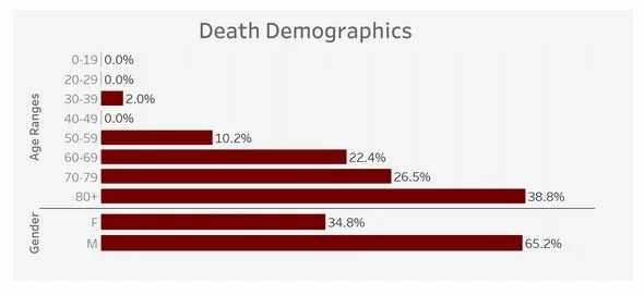 Sixty-five Hoosiers have died to date. Deaths have occurred over multiple days and are reported based on when data are received by ISDH.