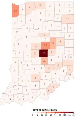 Marion County had the most new cases, at 156. Other counties with more than 10 new cases were Allen (12), Hamilton (15), Hendricks (11), Johnson (18), Lake (55) and St. Joseph (40). The Lake County totals include results from East Chicago and Gary, which have their own health departments.