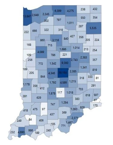 Marion County had the most new cases, at 91. Other counties with more than 10 new cases were Allen (12), Clinton (11), Elkhart (23), Hamilton (10), Jackson (15), Jennings (10), Lake (70), Porter (11), St. Joseph (13) and Tippecanoe (15). The Lake County totals include results from East Chicago and Gary, which have their own health departments. A complete list of cases by county is posted at www.coronavirus.in.gov, which is updated daily at noon. Cases are listed by county of residence.