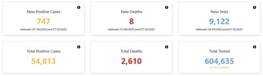 Statewide COVID-19 stats as of Friday, July 17, at 12 noon; Greene County reporting four new cases since Wednesday