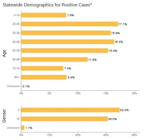 Demographics of confirmed cases statewide