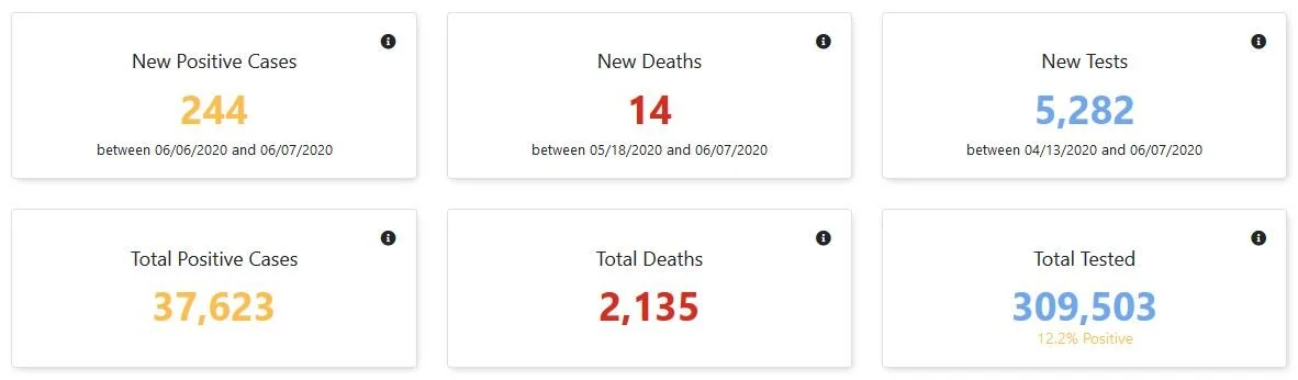 Statewide COVID-19 stats as of Monday, June 8, at 12 noon; Greene County reporting 175 cases, 28 deaths