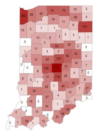 /When the Indiana Department of Health announced the updated statewide COVID-19 stats on Sunday, July 26, the data showed Greene County with a total of 222 confirmed cases and 34 deaths reported to the state, with a total of 2,992 tested and a positivity rate of 7.4 percent. Since stats were last posted on GreeneStreets one week ago, Greene County shows an increase of 15 confirmed cases, one more death and 421 more tested in the past week. Of those tested, some results may not yet be received or reported and included in the data. The new statewide counts are released once a day.