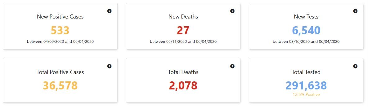 Statewide stats as of Friday, June 5, at 12 noon; Greene County reporting 172 cases, 26 deaths