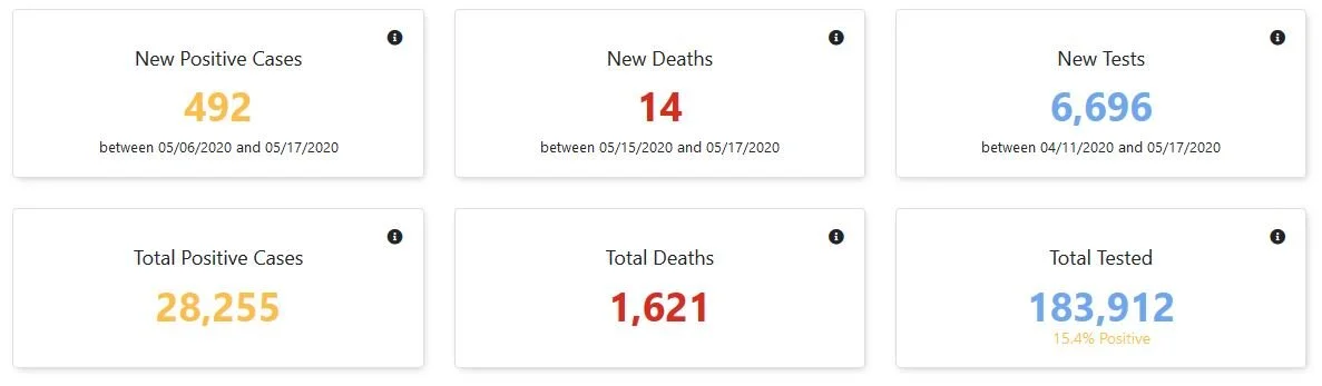 Statewide stats as of Monday, May 18, at 12 noon; Greene County reporting 160 cases