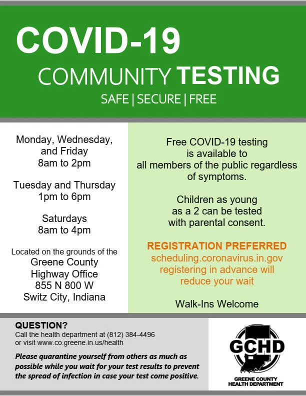 Greene County Health Department: Closed Thursday, February 3 and Friday, February 4 due to the weather. Their Covid Testing Site and Covid Vaccination Sites will also be closed for those days. Tentative, depending on how the roads are on Saturday, February 5, they may have to close their Testing and Vaccination sites, but they said they will be sure to call anyone scheduled for Saturday and let them know about the closing.