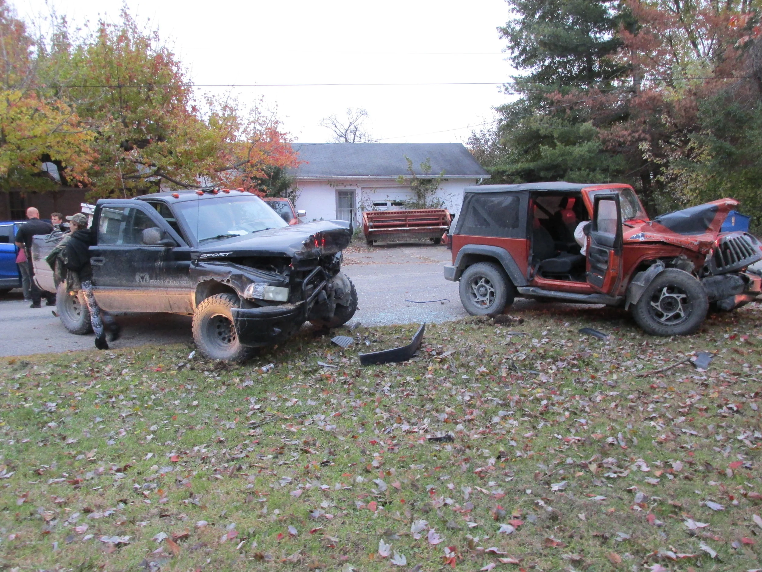 /A Jeep Wrangler and a Dodge Ram truck were both extensively damaged in a crash on a county road south of Jasonville early Tuesday morning. One driver suffered a minor injury.
