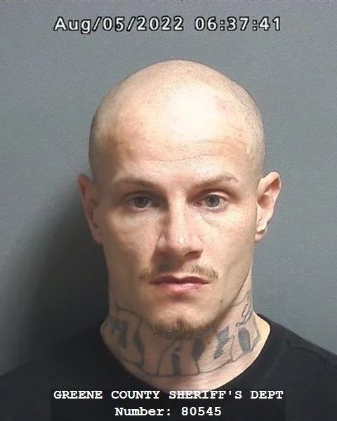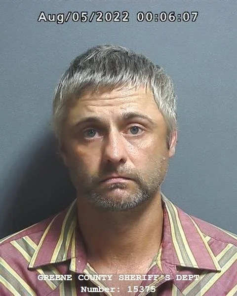 August 5, 2022, 6:30 AM, Gregory Alan Boswell II, 32, Indianapolis, Indiana, was arrested on new preliminary charges of felony theft of a vehicle with a prior conviction and identity deception. His bond was set at $14,000 surety with 10% cash allowed. Greene County Sheriff's Deputy Camron Frye was the arresting officer.