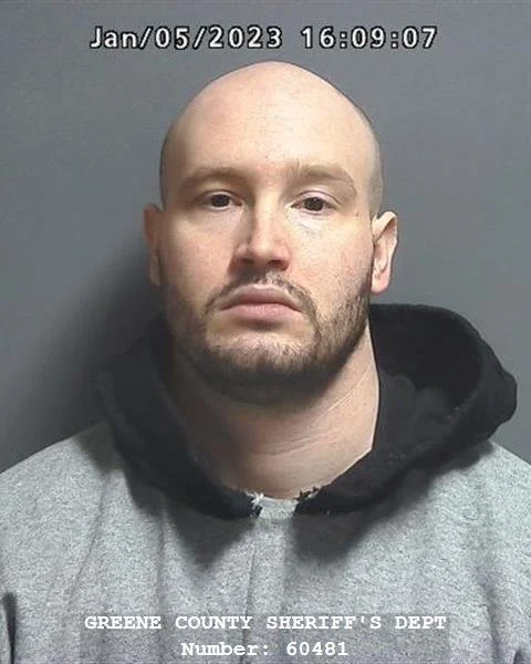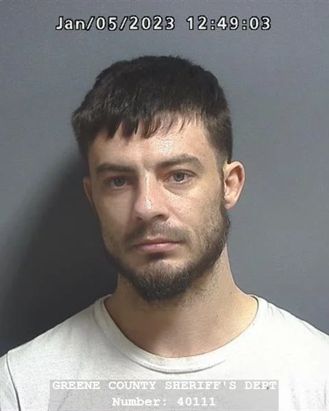 January 5, 2023, 2:29 PM, Matthew Aaron Doty, 31, Bloomington, Indiana, was arrested on a warrant issued in 2018 on charges of felony possession of methamphetamine and misdemeanor possession of a firearm by a domestic batterer and possession of marijuana. He was being held without bond. Greene County Sheriff's Deputy Bruce Porter was the arresting officer.