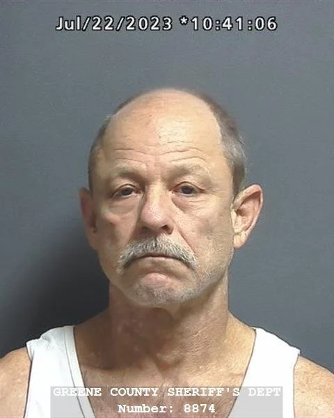 July 22, 10:32 AM, Michael Wade Myers, 56, Dugger, was arrested on a warrant for operating with a controlled substance in the body. No bond was allowed. Greene County Sheriff’s Department Deputy Devan Goad was the arresting officer.