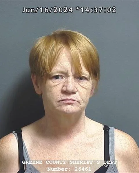 June 16, 2:16 PM, Chandra Kay Day, 47, Dugger, was arrested on warrants for theft and possession of marijuana/hash oil/hashish/saliva. No bond was allowed. Greene County Sheriff’s Department Deputy James Carpenter was the arresting officer.